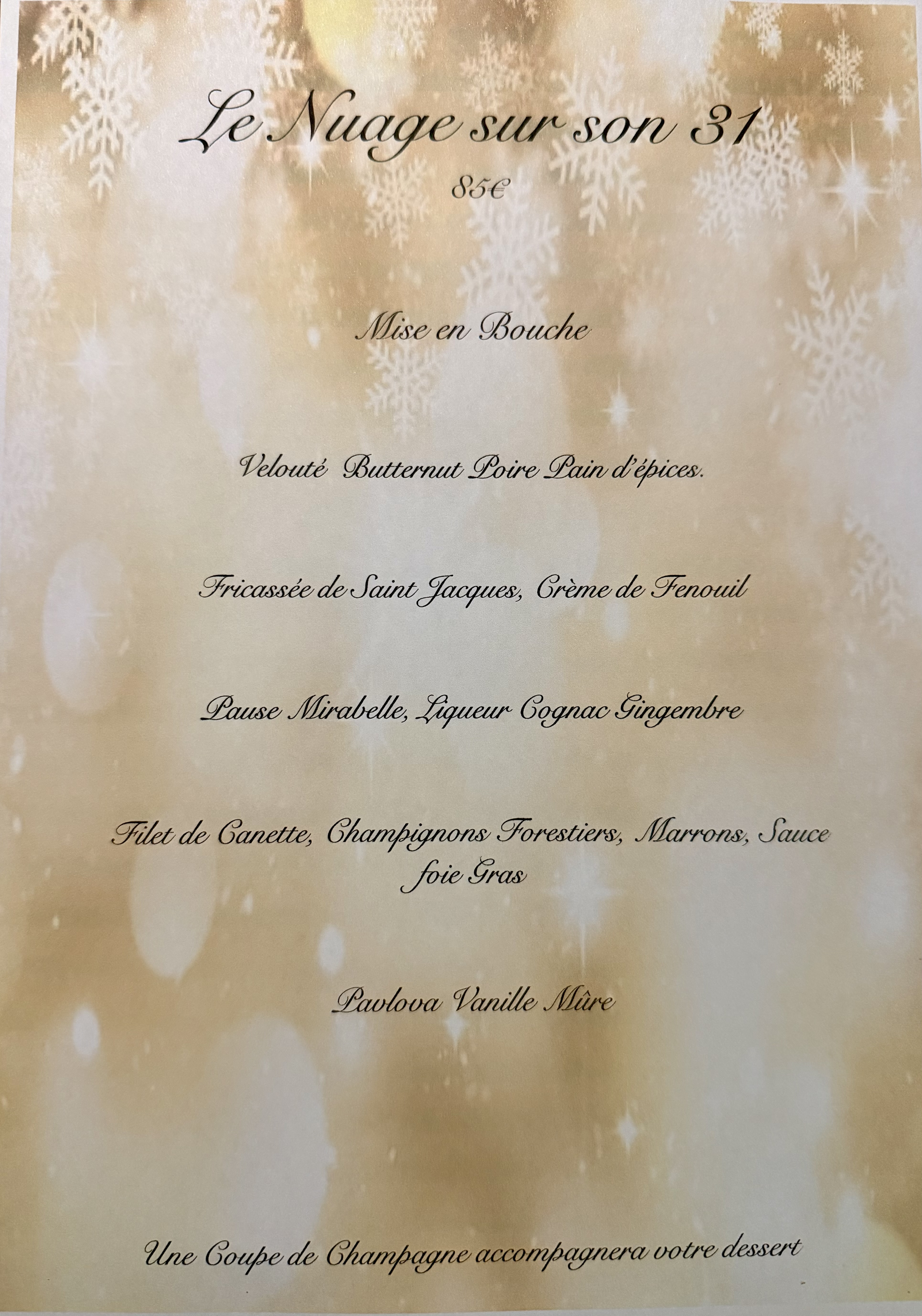 Menu du 31 Décembre